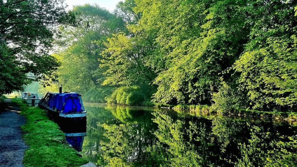 At Dunham, the canal narrows to pass over the River Bollin aqueduct (next to the sewage works).