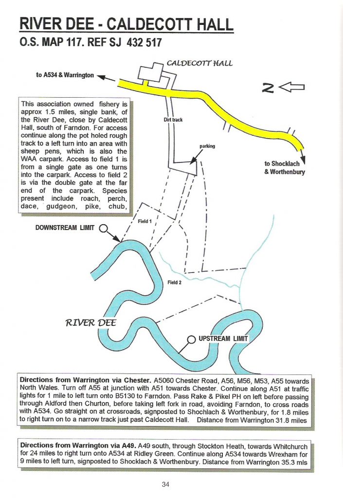 The Association controls 1.5 miles of fishing on the River Dee, south of Farndon at Caldecott Hall.